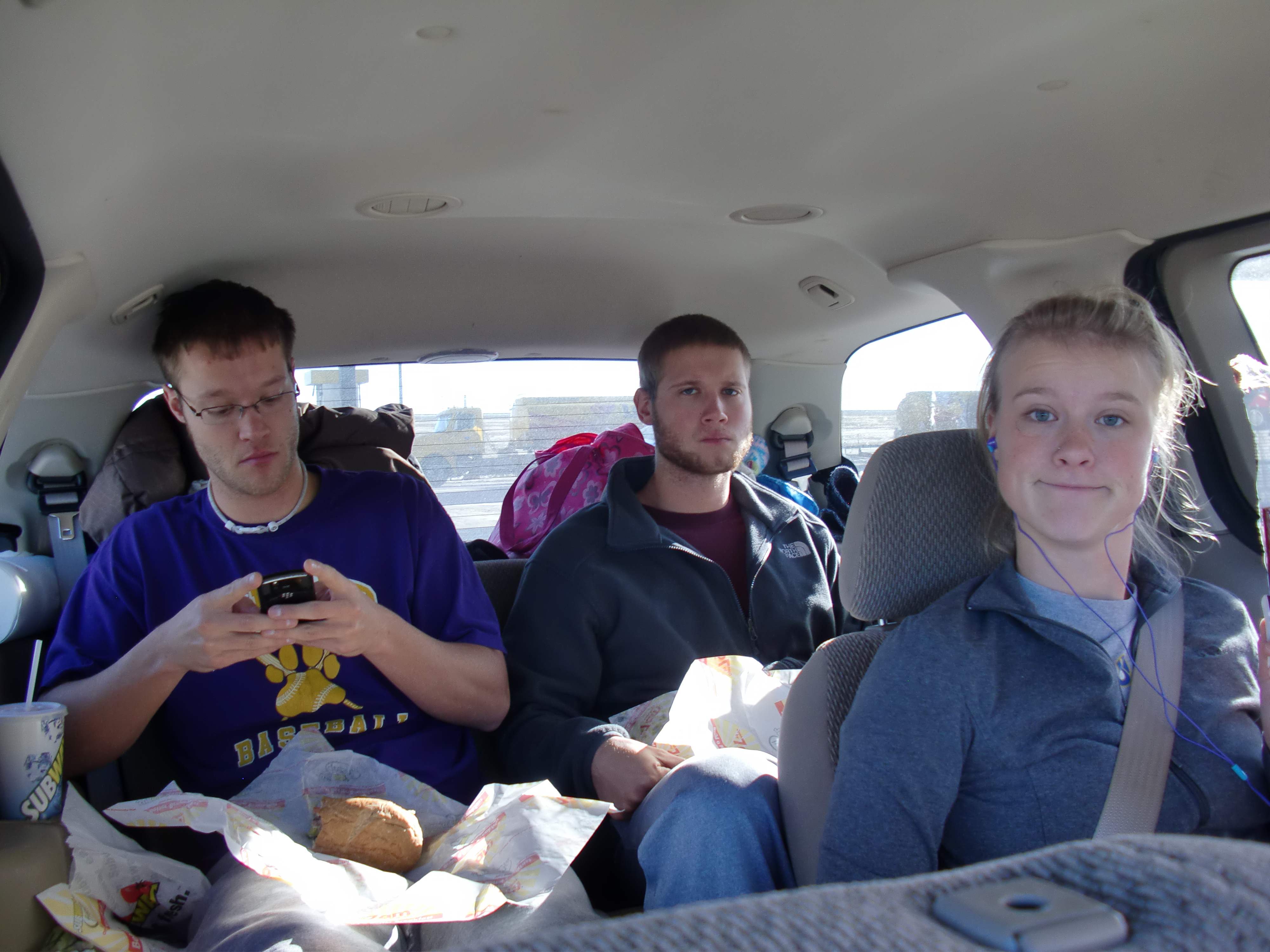 Yep, those are Subway sandwiches. The two boys didn’t stay long in the backseat because the back bumper started dragging on the highway. I did enjoy a glorious hour in the front seat, though.