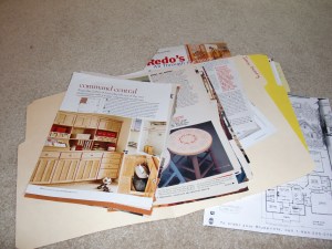 There’s a folder of decorating plans: fabulous pictures of designer homes along with simple ideas for organizing  junk drawers and such.