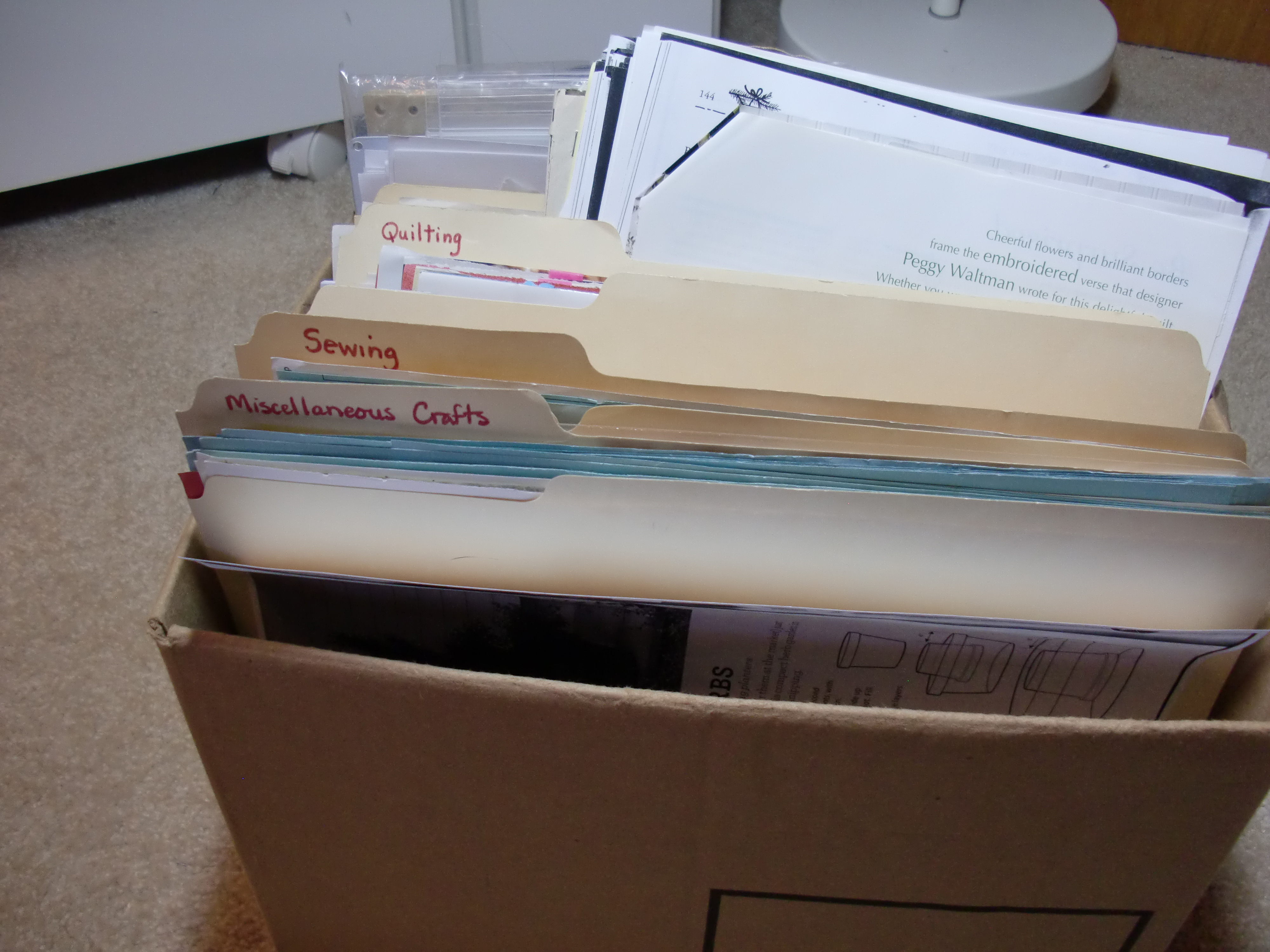 Even thicker is a file of craft and sewing ideas.  Actually, I needed to transfer those to a box a few years ago; but all the patterns are organized by file folder according to specific types.  File folders just make me happy, I guess.