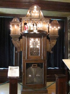 Continuing northeast, we found ourselves in Oshkosh, b’gosh.  Since it was well past noon, and we were dangerously close to that hot-grumpy-hungry state, we stopped at the New Moon Cafe for refreshment.  They were kind enough to prepare something off-menu for some of our special dietary needs and we all felt rejuvenated for our next stop: the Oshkosh Public Museum.  Evidently, this was the home of a very special clock called the Apostle’s Clock.  Every hour on the hour, this 114 year old clock would spring into action.  Jesus would come out the top door and the twelve apostles would pass by Him and bow their mechanical heads.  All except Judas, that is.  When he would come out the little door and go by Jesus, Judas would turn his back to the Lord.  That 30 seconds of drama is what we came 90 miles to see.