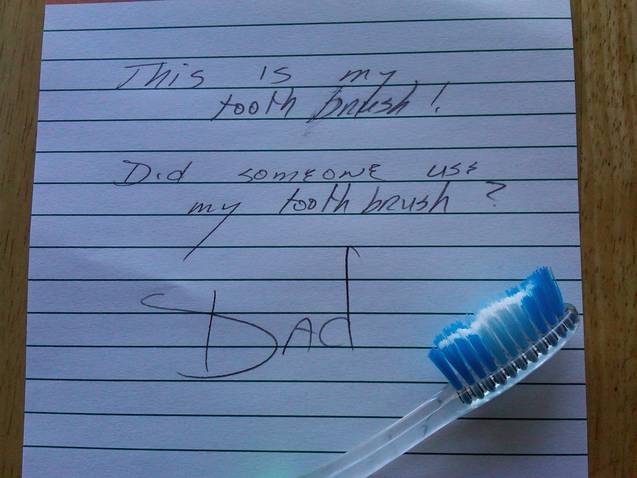 …your toothbrush is missing from the cup in the bathroom…