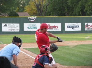• Ha! The first one is Jake, the second one Sam. Each year there is a deal made that whichever brother hits the first home run, the other brother has to run the bases in his undies. Last year, Sam hit the first homer, so Jake was a good sport and stripped down to his skivies and trotted around the bases. The team did let him wait until most of the fans went home…