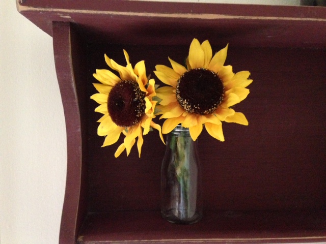 Sunflowers are in their glory now, so I like to spread some of their cheer around the house.