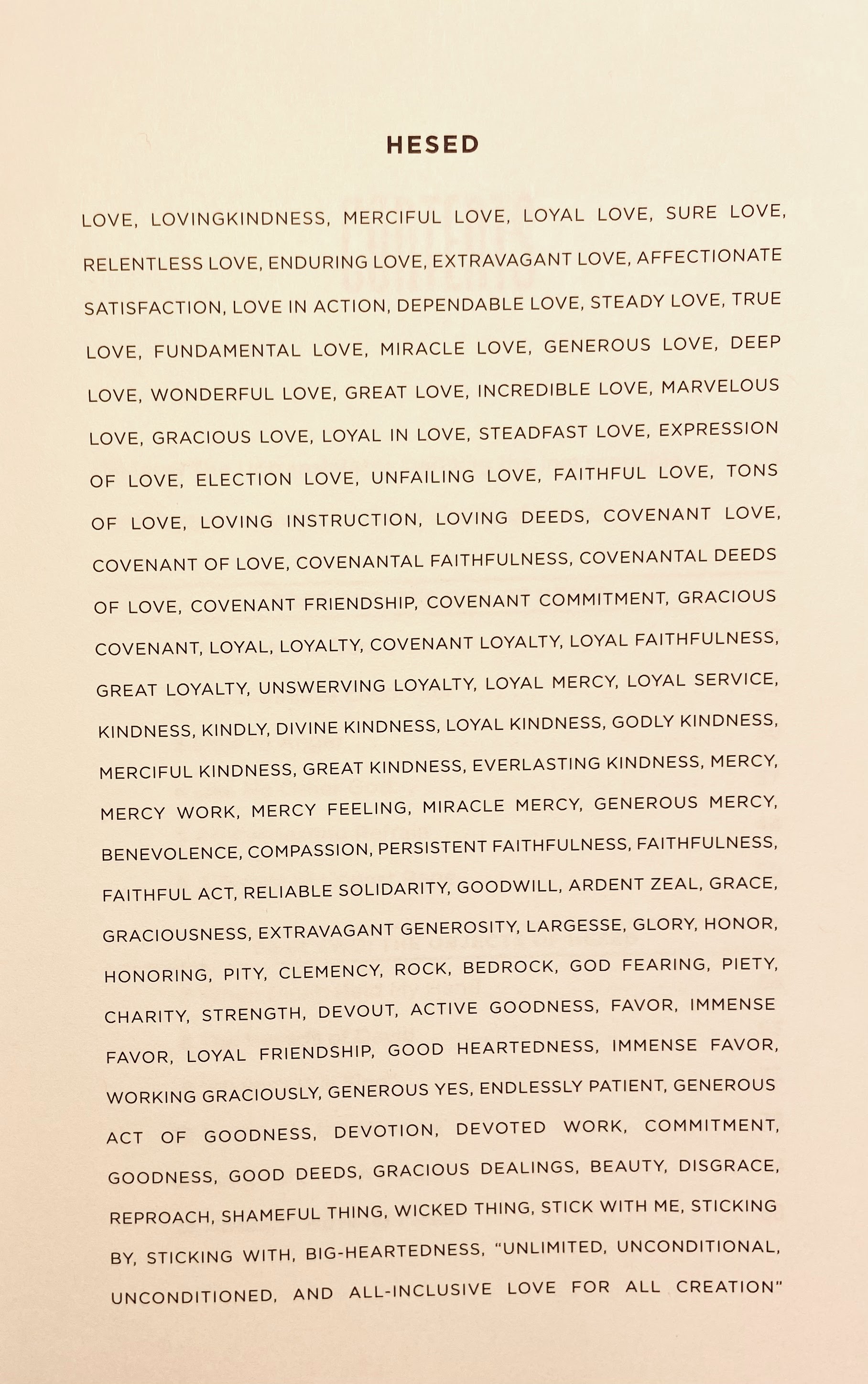 Hesed is possibly the most unique word ever uttered. That may sound like an exaggeration, but consider the following: this one Hebrew word is translated into English in over 100 different ways, making it practically untranslatable. There is lots of room to crawl inside and rattle around in this two syllable treasure for a year.