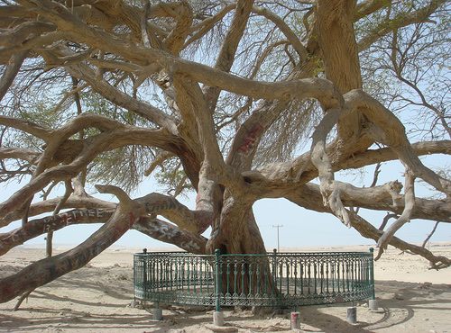 Until that great and glorious day, the closest thing we have to the biblical Tree of Life might be found in Bahrain, a small island nation off the northeast coast of Saudi Arabia. Out in the middle of an arid desert stands a 32 foot mesquite tree that flowers twice a year and has green leaves all year round. Scientists have been baffled for centuries by the aptly named “Tree of Life”, as it keeps growing despite any visible source of water. This mysterious tree is the only green plant for miles around.