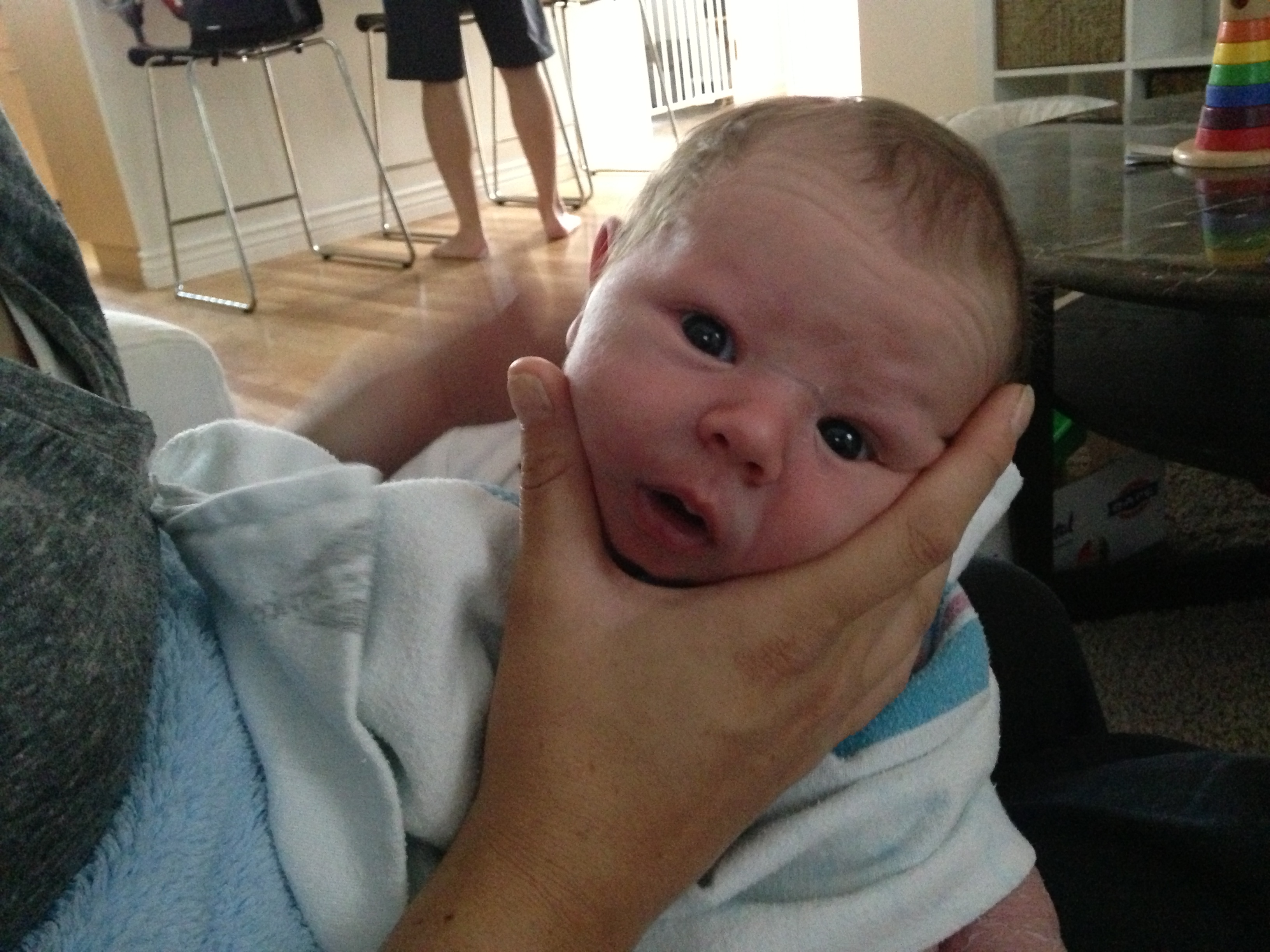 Although I’m here to help my daughter and her husband keep the household intact during this transition to a family of four, it’s clear that my main function is to be Hud Bud’s buddy. Today, I woke up extra early so I could jump in the shower and get my make up on before Hudson woke up. I sure didn’t want to scare the little guy.