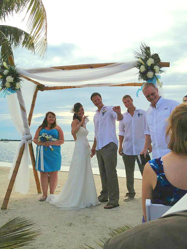 But when the time came to exchange rings, something went awry. My sister and PB’s brother had conspired to pull a prank on us. My future father-in-law held out his open Bible to receive the gleaming gold bands from the maid-of-honor and the best man.